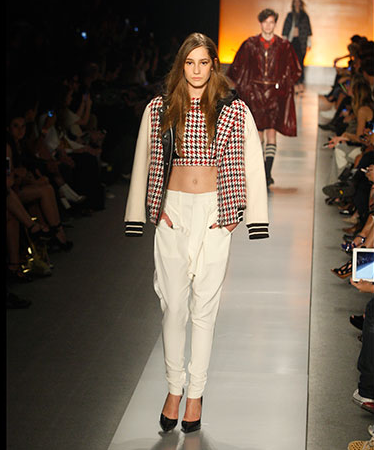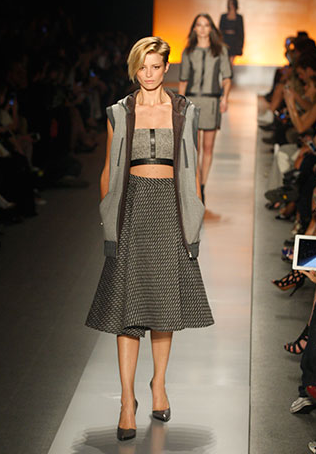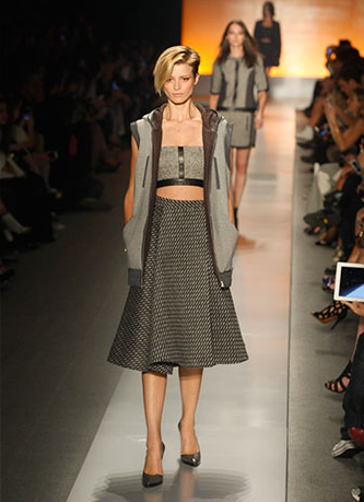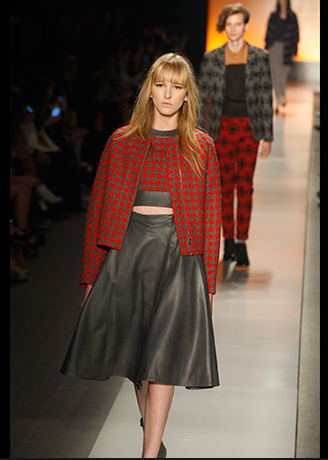 A coleção trouxe peças de alfaiataria, saias armadas e casaquetos, em pied-de-poule e pied-de-coq, com um ar dos anos 50.