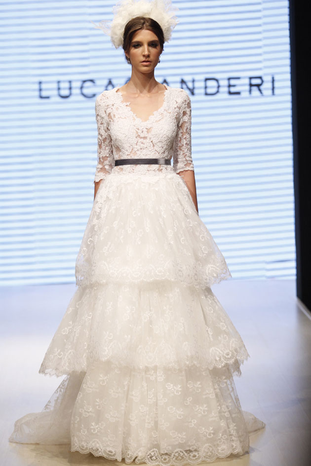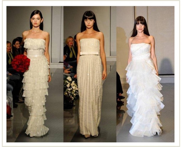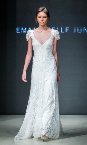 Outra tendência que sempre fez sucesso entre as noivas, o tomara que caia, apareceu pouco nas coleções. O hit da mostra foram os modelos retrô, vestidos mais comportados, com mangas e decotes em V.  Esse estilo já fez muito sucesso entre as princesas e divas do cinema e agora volta com tudo.