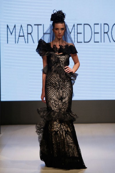 Martha Medeiros inovou ao apresentar modelos em preto com forro em bege,  em rendas. A estilista é famosa por suas rendas na tradicional Renascença, filé, Richiileu, Biro e a delicadíssima renda.