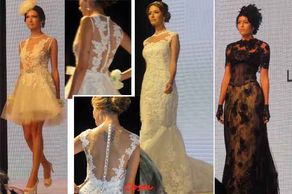 Outro detalhe em evidência foram as rendas, nacionais e francesas, que cobrem o colo e os braços. Estas rendas estão também em românticos boleros.