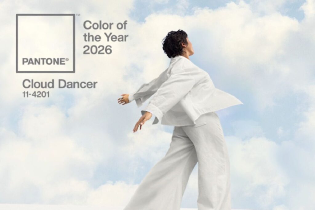Todos os anos a Pantone- que define as cores que vão estar em alta na decoração e na moda, para 2026 a cor escolhida foi: PANTONE 11-4201 Cloud Dancer, definido como um branco suave.