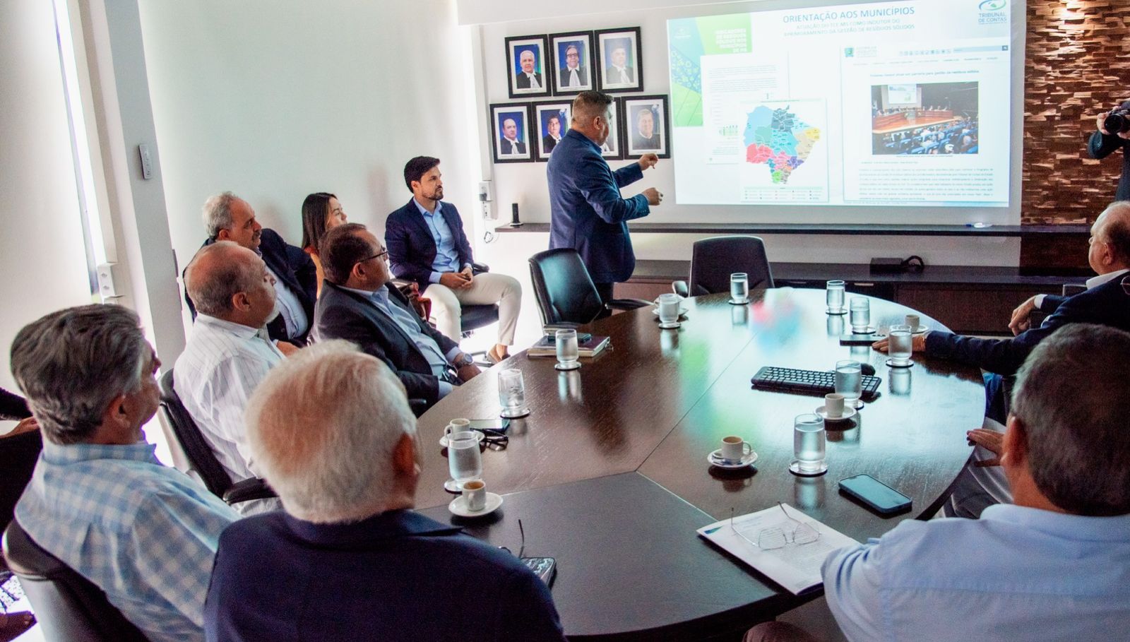 Participaram da reunião o presidente do TCE-MS, conselheiro Flávio Kayatt, os conselheiros Marcio Monteiro, Sérgio de Paula e Osmar Jeronymo, além do conselheiro substituto Célio Lima de Oliveira e do procurador-geral do Ministério Público de Contas, João Antônio de Oliveira Martins Júnior. Membros da diretoria, Yasmin Mayumi Yoshimoto Barbosa e os coordenadores Aluízio Borges, Marcos Macena, também participaram da apresentação.